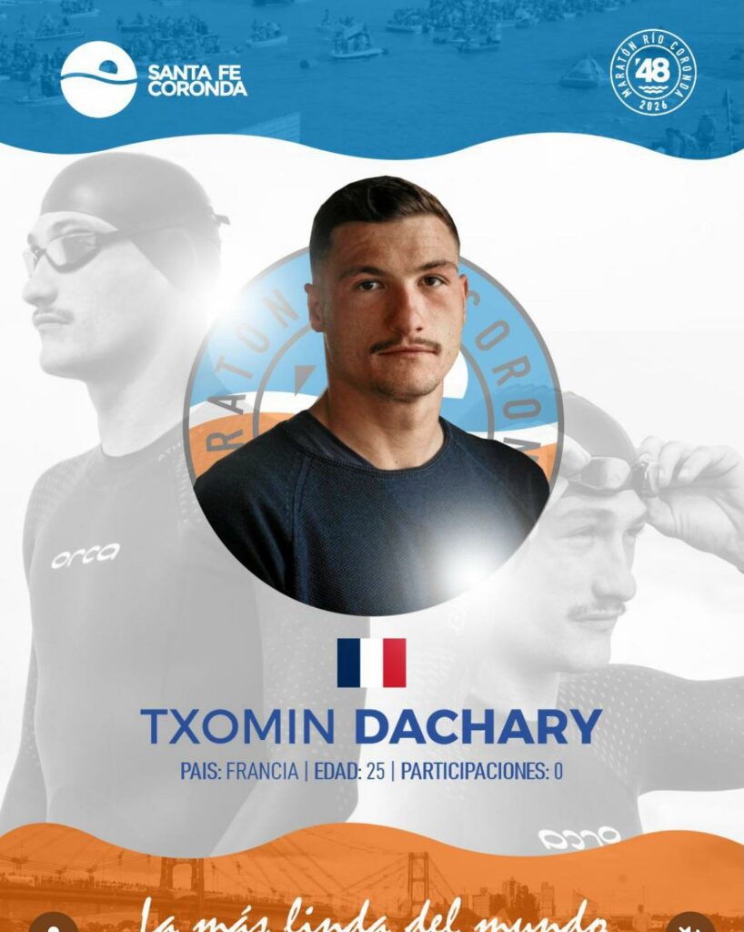 Notre nageur senior Txomin Dachary a été sélectionné parmi 18 nageurs mondiaux de très longue distance en eau libre pour prendre part à la 48ᵉ édition du Marathon Aquatique International Santa Fe–Coronda, en Argentine.
